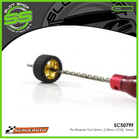 The drill bit tapers from 2mm up to 3mm allowing the user to finely clean and adjust both wheels and gears