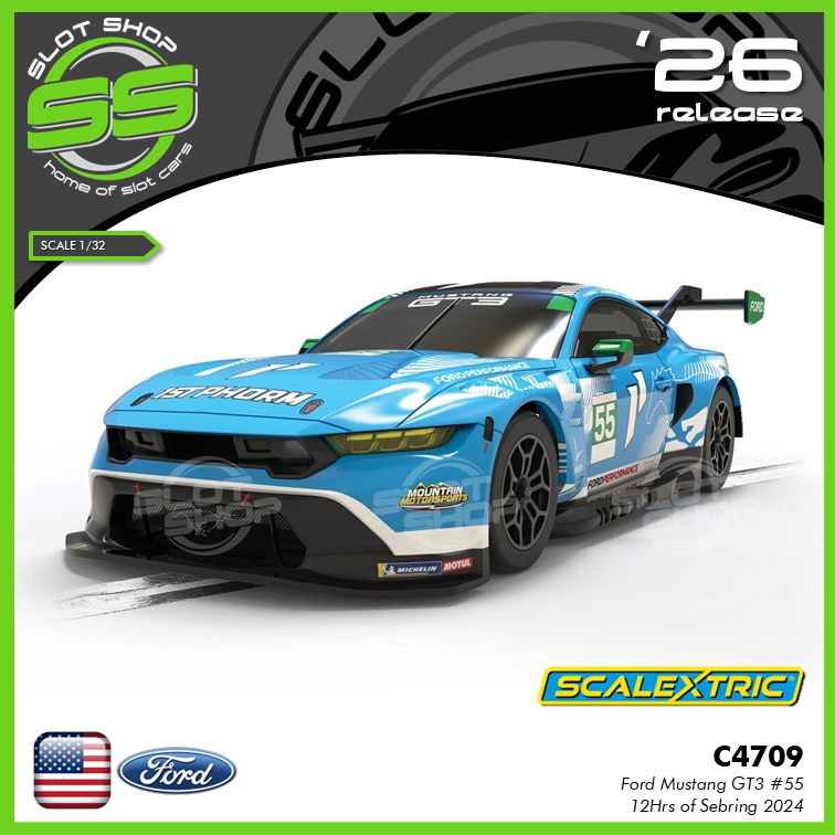 This Scalextric version recreates the key details from the event: number 55, authentic sponsor branding, and the distinctive colour layout used during the race.