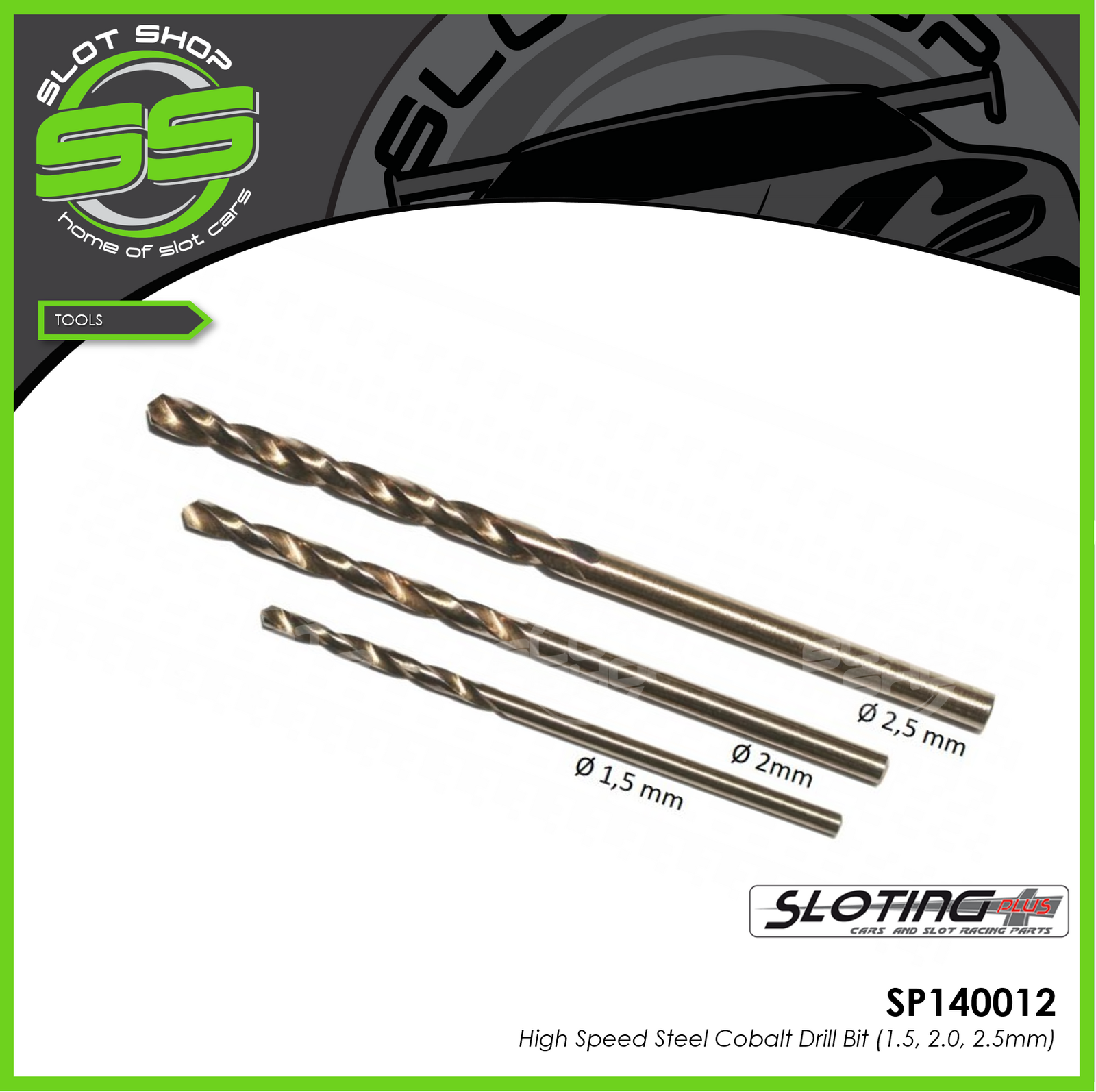 Set of three high quality COBALT drill bits with specific sizes to be able to drill holes for the M2, M2.5 and M3 threads.