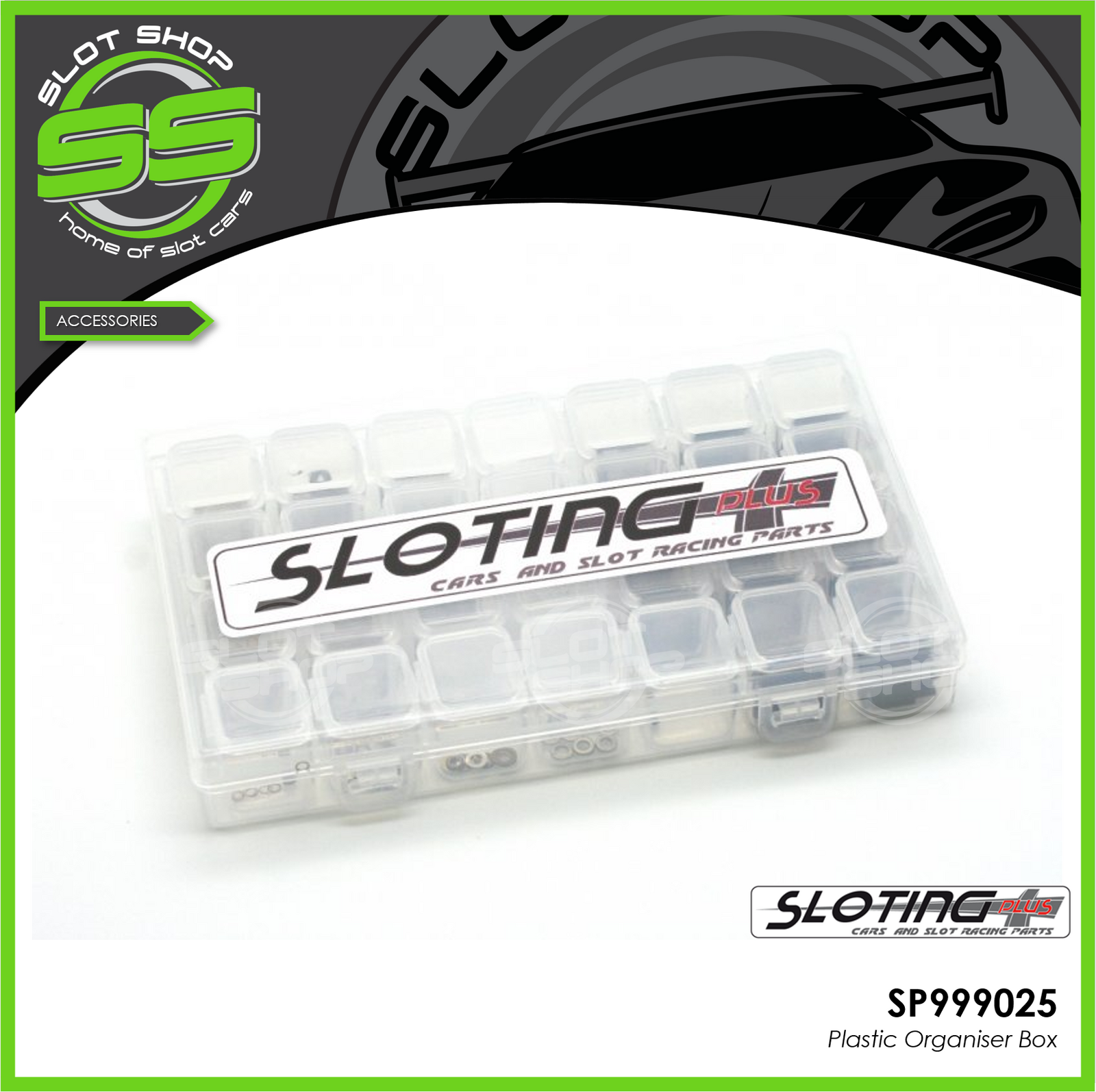 Transparent plastic organiser box with 28 separate compartments