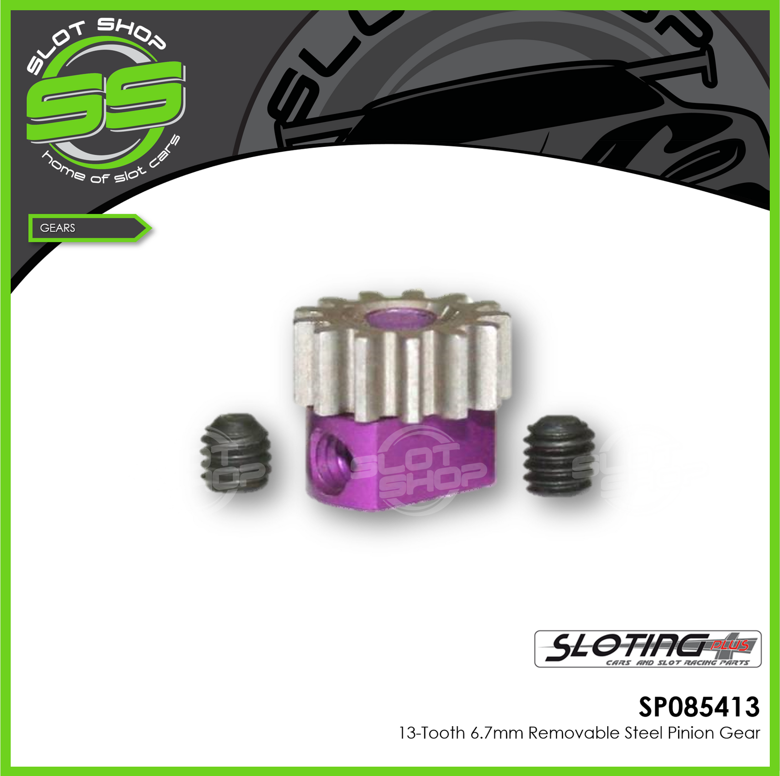 The form of the pinion gears and design of the aluminum base was created by Sloting Plus after months of research and track testing, resulting in a product of the highest quality and reliability in which the user can trust and in club competition and endurance racing.