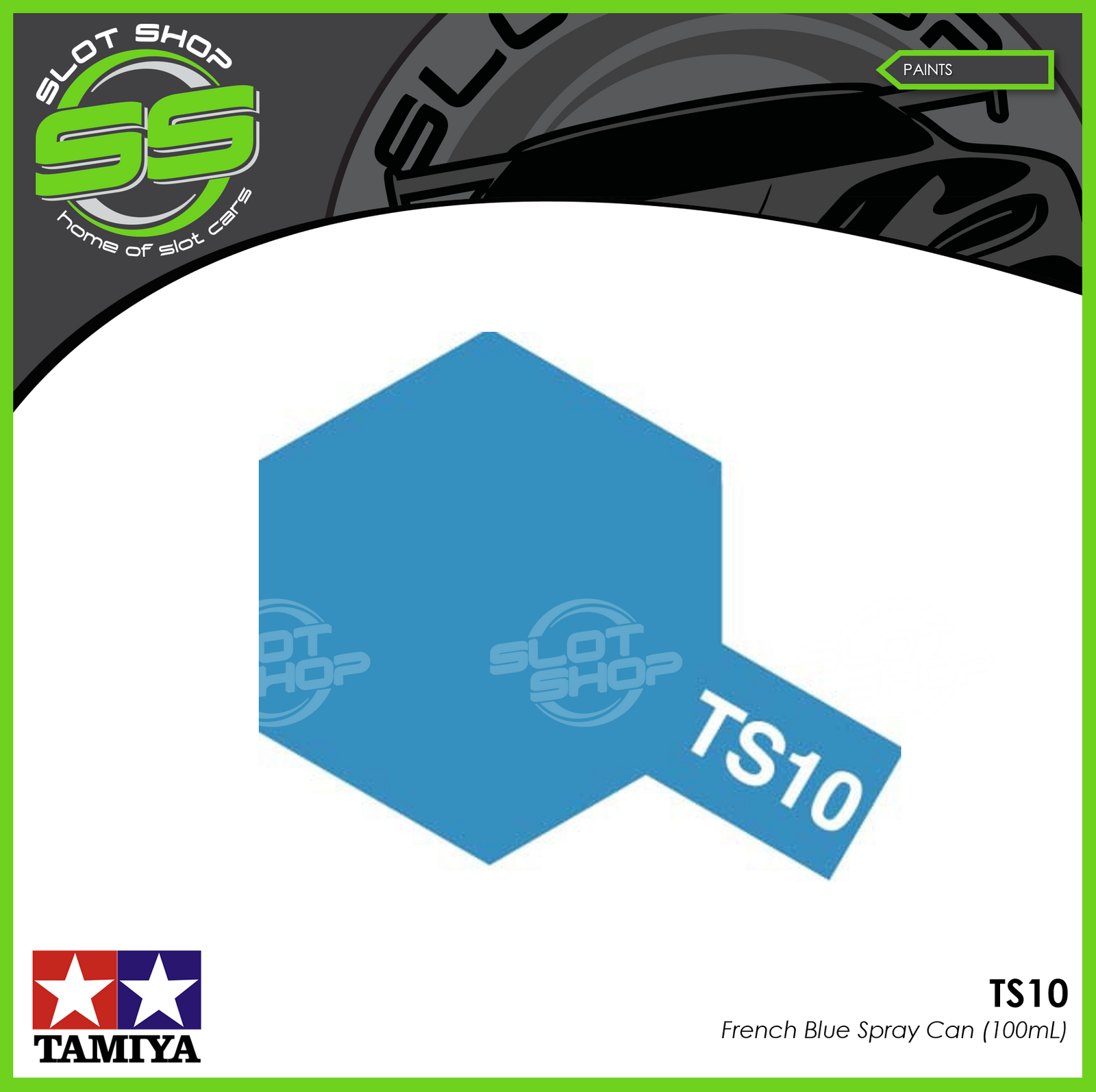 Tamiya colour range below, see a colour you want? Email us at sales@slotshop.com.au and we'll get it in for you... we've got you covered...