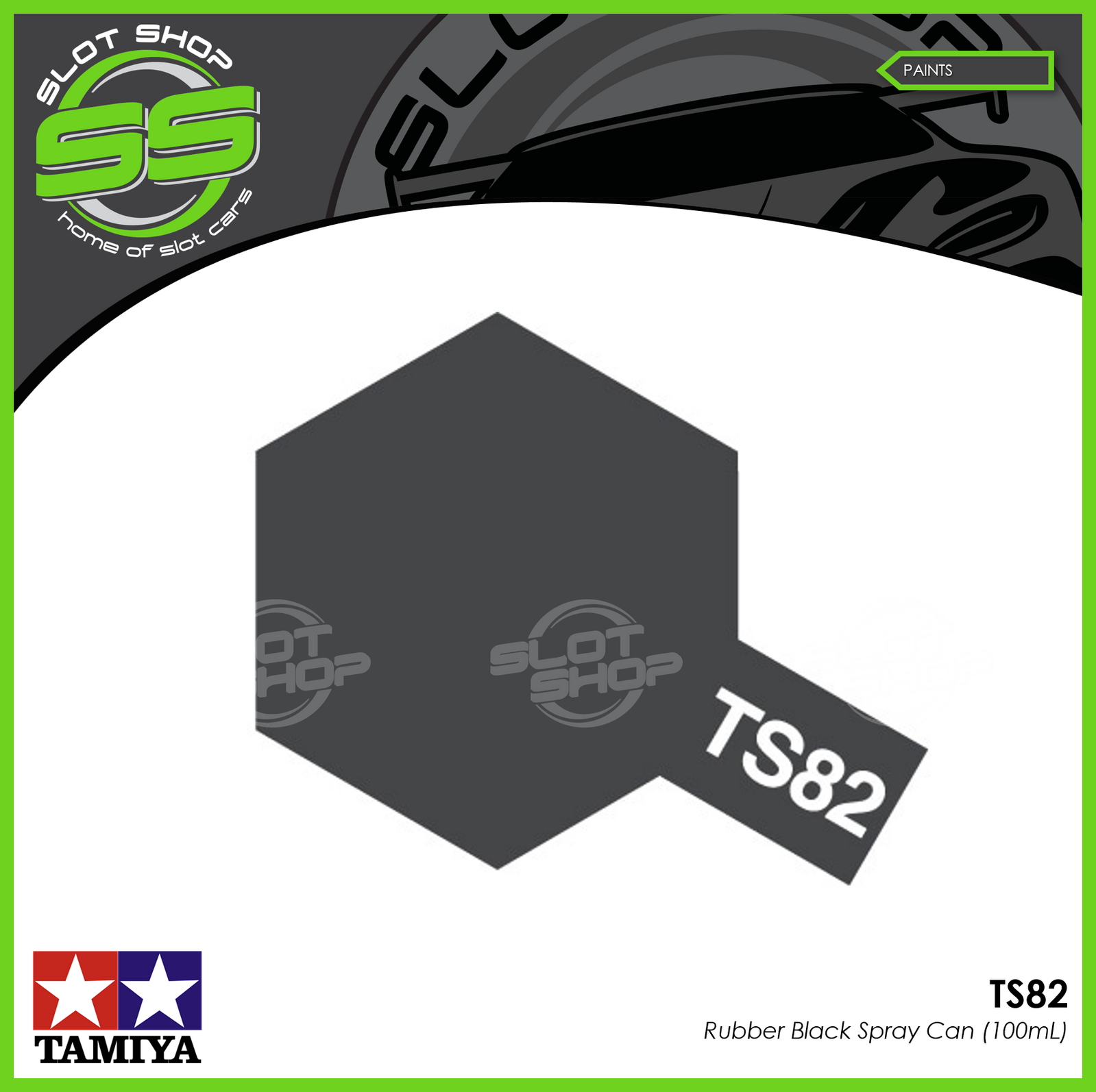 NOTE: TAMIYA TS paint is not designed to be used with clear Polycarbonate/LEXAN R/C body shells. The paint will flake off. For Polycarbonate applications please use Tamiya PS spray paint.